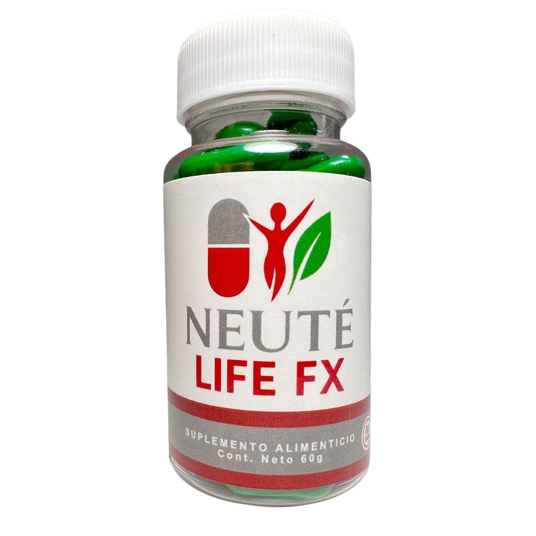 Neuté Life FX es la versión concentrada de la fórmula de Neuté, con un “doble aporte” de nutrientes en cada toma. Contiene fruto de papaya (Papaya carica), fruto de tejocote (Crataegus pubescens) y zacate de limón (Cymbopogon citratus), con estearato de magnesio como excipiente, más vitaminas y minerales. Está diseñado para quienes buscan un soporte intensivo dentro de una rutina de bienestar.