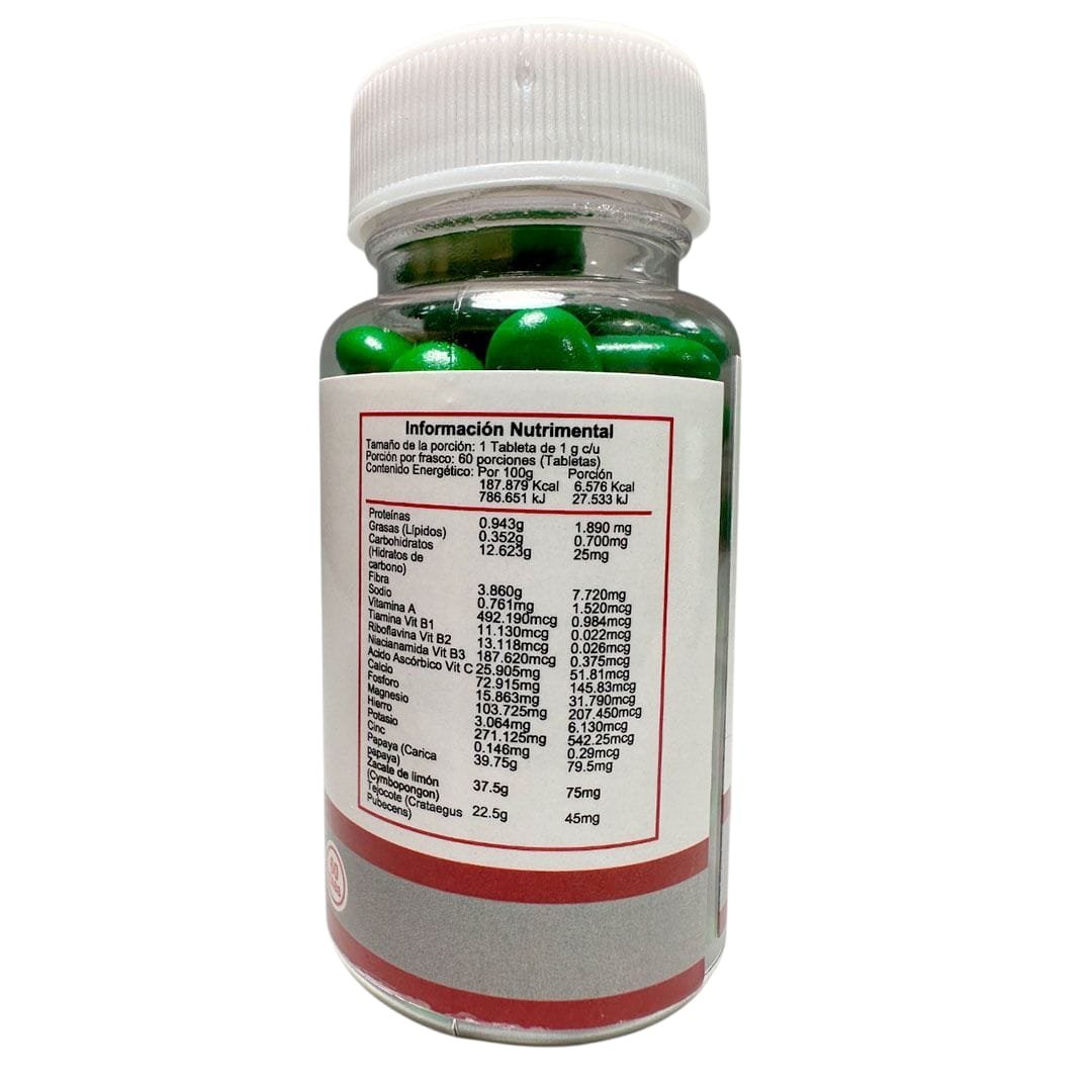 Aviso: es un suplemento alimenticio; no sustituye una alimentación equilibrada ni tratamientos médicos. No usar en embarazo, lactancia o en menores. Si tomas medicamentos o tienes alguna condición, consulta a un profesional de la salud.